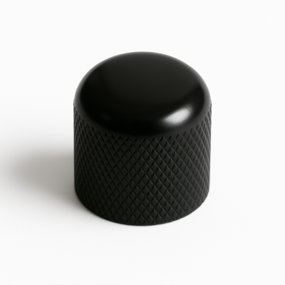 Bu kubbe tipi gitar knobu, dış yüzeyi metal döküm, iç kısmı ise dayanıklı plastik malzemeden üretilmiştir.