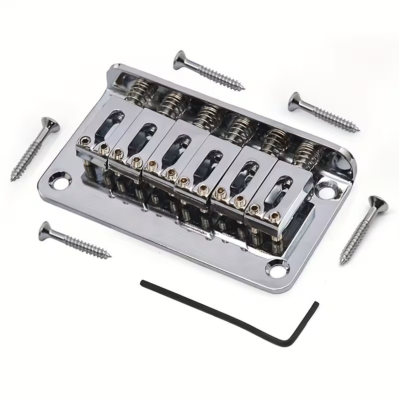 Strat stil 42 mm chrome hardtail gitar köprüsü, tremolosuz Strat tipi elektrik gitarlar için tasarlanmış sabit köprü modelidir. 42 mm tel aralığına sahiptir. Üst plaka genişliği 78 mm, alt vida aralığı 67 mm ve saddle aralıkları 10,5 mm ölçüsündedir. Standart Strat hardtail gövdelerle uyumludur. Sabit yapısı sayesinde akort stabilitesi ve sustain avantajı sağlar. Ekonomik ve pratik bir yedek parça çözümüdür.