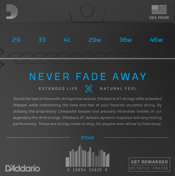 D’Addario XT telleri, en güçlü yüksek karbon çeliğimizi setin her telinde gelişmiş bir korozyon direnci işlemi ile birleştirerek, en sevdiğiniz kaplanmamış tellerin tonunu ve havasını korurken, size gelişmiş kırılma direnci ve eğimsiz perde stabilitesi sunar. Bu teller, asla kaybolmayan ödün vermeyen performansta kalmak için üretilmiştir.