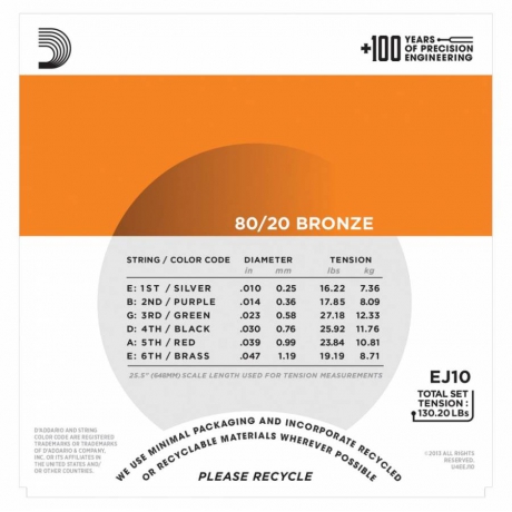 D'Addario EJ10 80/20 Bronze Akustik Gitar Teli (010-047)