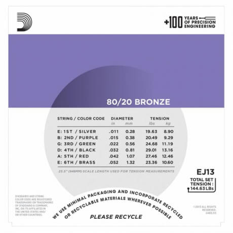 D'Addario EJ13 80/20 Bronze Akustik Gitar Teli (011-052)