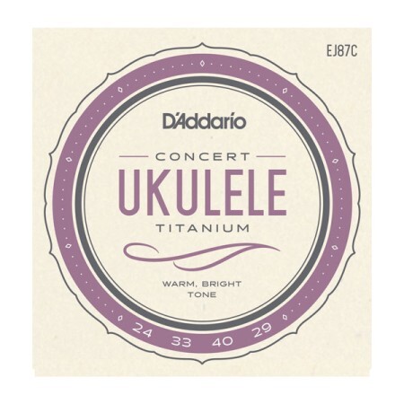 | D'Addario EJ87C sets are designed for use with all concert ukuleles. Each string within this set is made from our bright sounding titanium material and optimized for standard GCEA tuning. D'Addario Titanium Ukulele strings are crafted from a dense monofilament material that has an attractive, translucent purple hue and a polished, smooth feel similar to nylon. This unique material is particularly beneficial to Ukulele’s due to its slightly brighter tone and increased projection, resulting in more volume, clarity and dynamics.