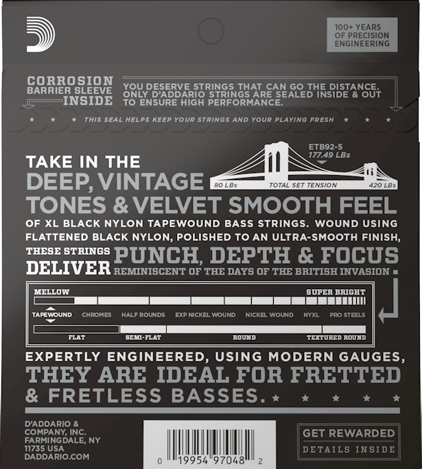 D'Addario Tapewound ETB92-5 Medium 5-String / Long Scale Set 5 Telli Bas Gitar Teli 50-135