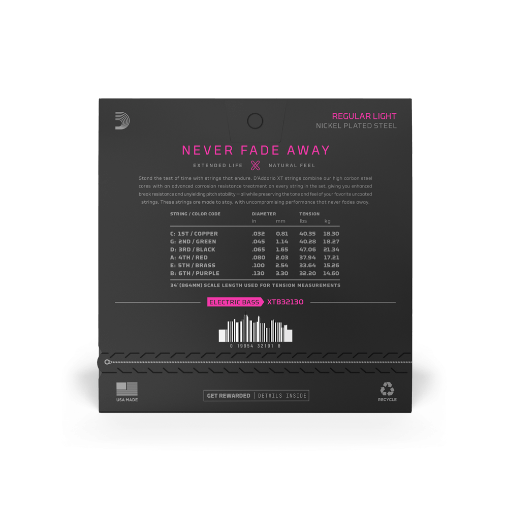 XT Bass Nikel Kaplama Çelik teller, her telde uzun ömürlü bir işlemle birleştirerek kaplanmamış tellerin doğal tonunu ve hissini koruyor.