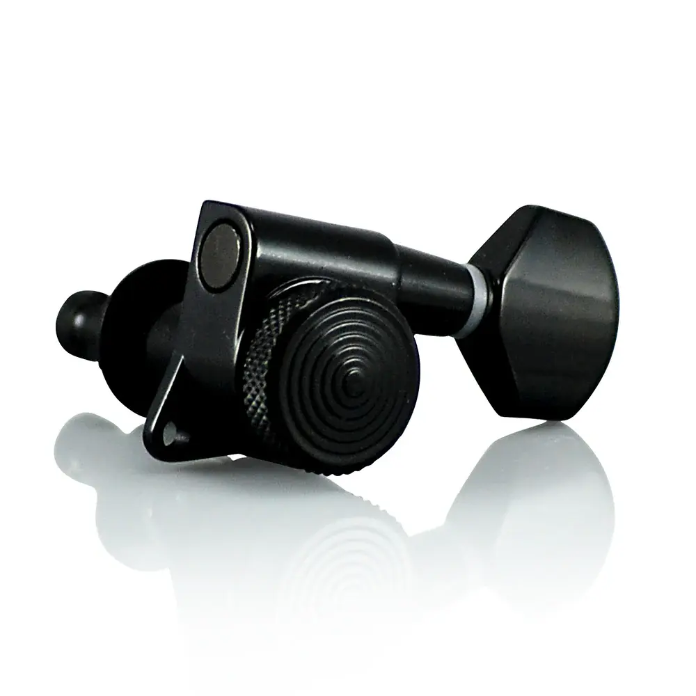 Bu 6-in-line kilitli burgu takımı, modern elektro gitarların burgulu kafa yapısında kullanılan pratik bir yükseltmedir. Kilitleme sistemi telin burgu üzerinde sabitlenmesini sağlar; bu sayede telin gereksiz tur yapması azalır ve tel değişimi daha hızlı yapılır. Özellikle tremolo kullanılan gitarlarda (veya agresif bend/vibrato yapan kullanıcılarda) akort kaçmalarına karşı daha tutarlı bir kullanım hedeflenir.