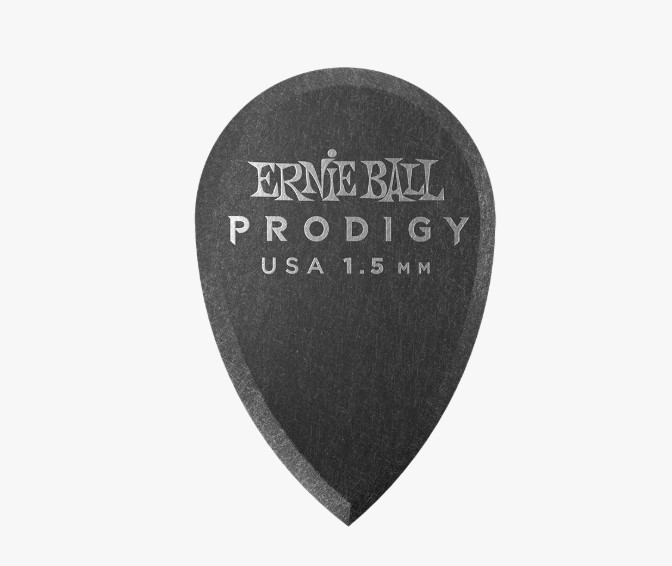 Ernie Ball Prodigy picks feature highly durable delrin material for a more secure non-slip surface. The machined beveled edge and sharp point allow for less drag, added articulation, and precise control while playing. This 1.5mm, Teardrop shape, is new for