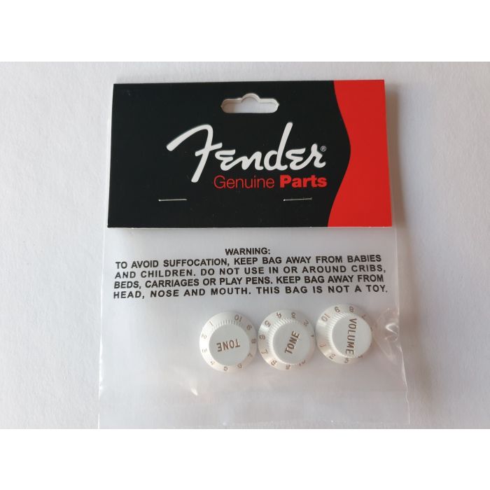 Set of three plastic push-on control knobs designed to fit 1/4" split-shaft potentiometers on nearly all U.S.- and Mexico-made Stratocaster models manufactured from 1954-present.
