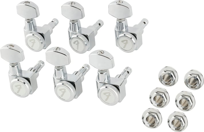 Fender’in orijinal kilitli burgu takımı, Stratocaster ve Telecaster gitarlar için özel olarak tasarlanmıştır. Tamamen kısa post (all short post) yapıya sahip bu burgu seti, daha düşük açıyla tel sarımı sağlayarak daha iyi akort stabilitesi ve daha az tel kopması sunar. Pim Çapı (Tuner Shaft Diameter): Yaklaşık 10 mm (modern Fender kafa yapılarına uyumludur) Pim Uzunluğu (Post Height): Yaklaşık 18 mm