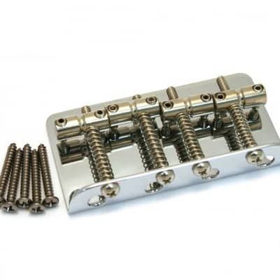 Fender Mexico Standard series Jazz Bass / Precision Bass bridge assembly. Vintage style bridge mounts with 5 screws and features ’70s style single groove saddles. Includes correct mounting screws and hex wrench for saddle height adjustment. Made in USA.