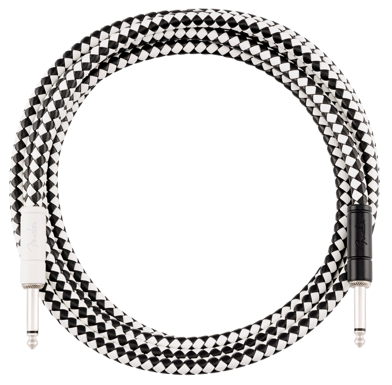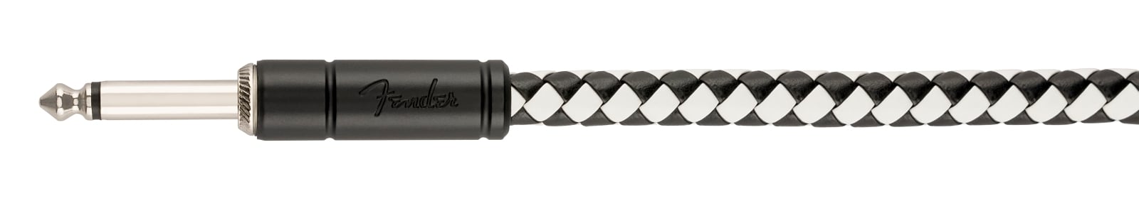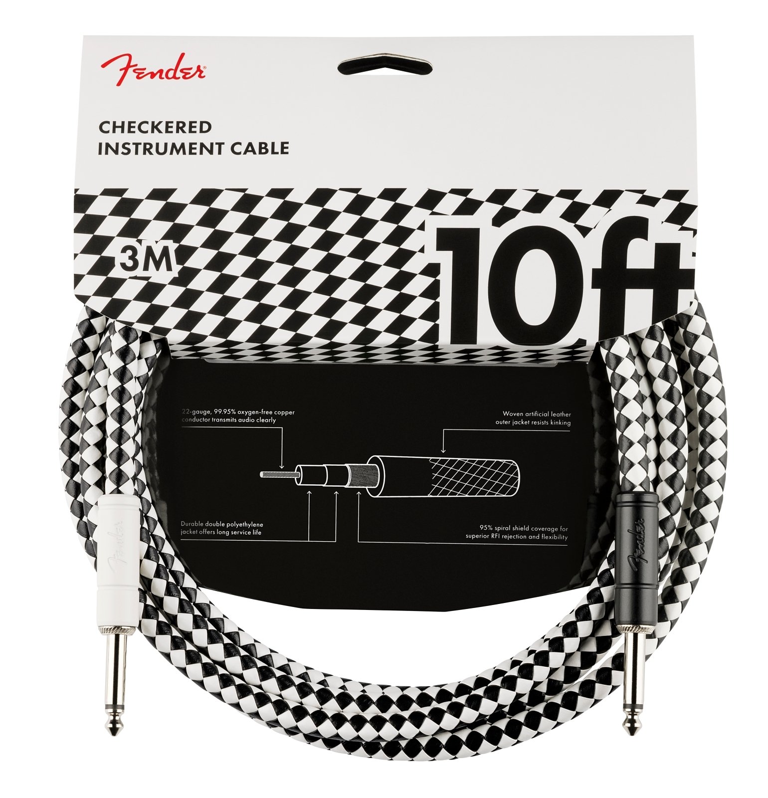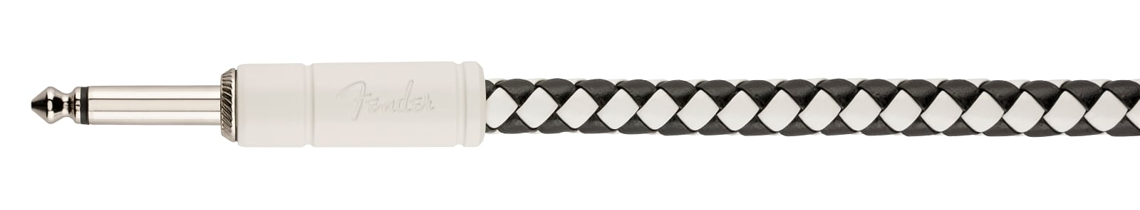 Fender Kareli Enstrüman Kablosu**, dokuma yapay deri kaplama ve özel şekillendirilmiş uçlara sahiptir.