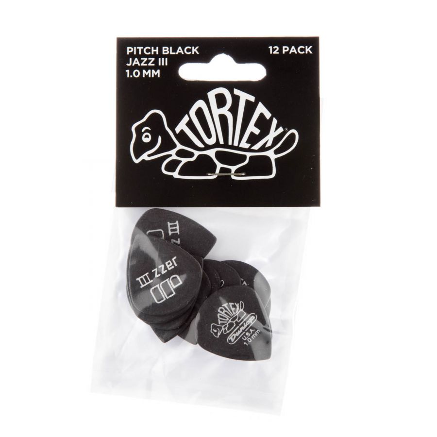 Jim Dunlop 482R-1.00 Tortex Pitch Black Jazz III 12li Paket Pena (1.00 mm)
