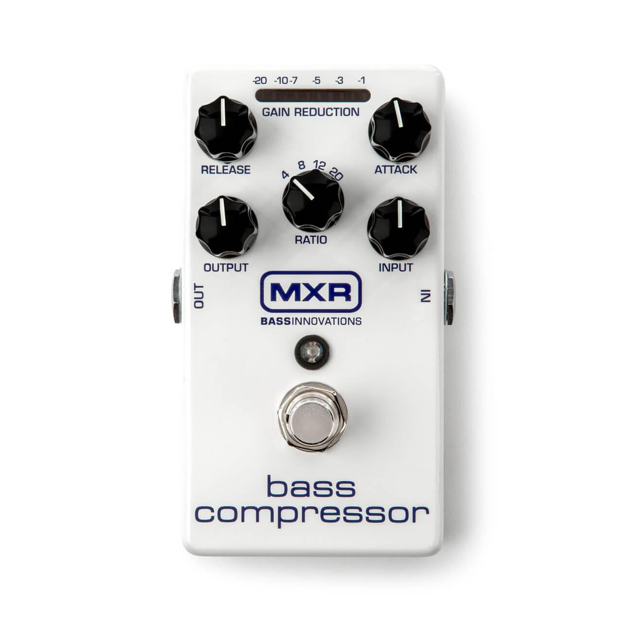 Kompresör pedalı, bas gitarın ses seviyesindeki ani yükselmeleri kontrol eder ve yumuşak çalınan notaların daha net duyulmasını sağlar. Sert vurulan notaları bastırır, zayıf kalanları dengeler. Sonuç olarak bas tonu miks içinde daha dengeli, daha net ve daha profesyonel duyulur. Hem sahnede hem stüdyo kayıtlarında dinamik kontrol için kullanılır.