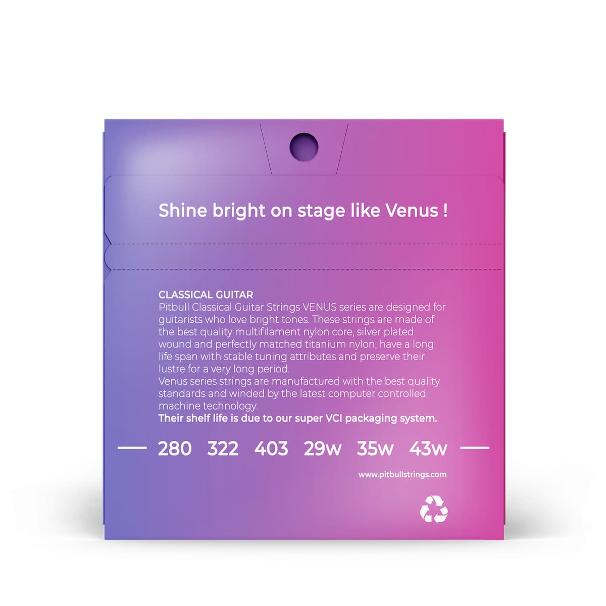 Pitbull Venüs Serisi Klasik Gitar Telleri, gümüş kaplı sarımlar ve Titanyum Nylon tiz tellerden oluşur.Sarımlı tellerdeki ipeksi nano kaplama teknolojisi sayesinde, normal tellere göre kararmalara karşı çok dayanıklıdır. Uzun ömürlü ve parlak tınılı teller arıyorsanız, Venüs serisi tam size göre!