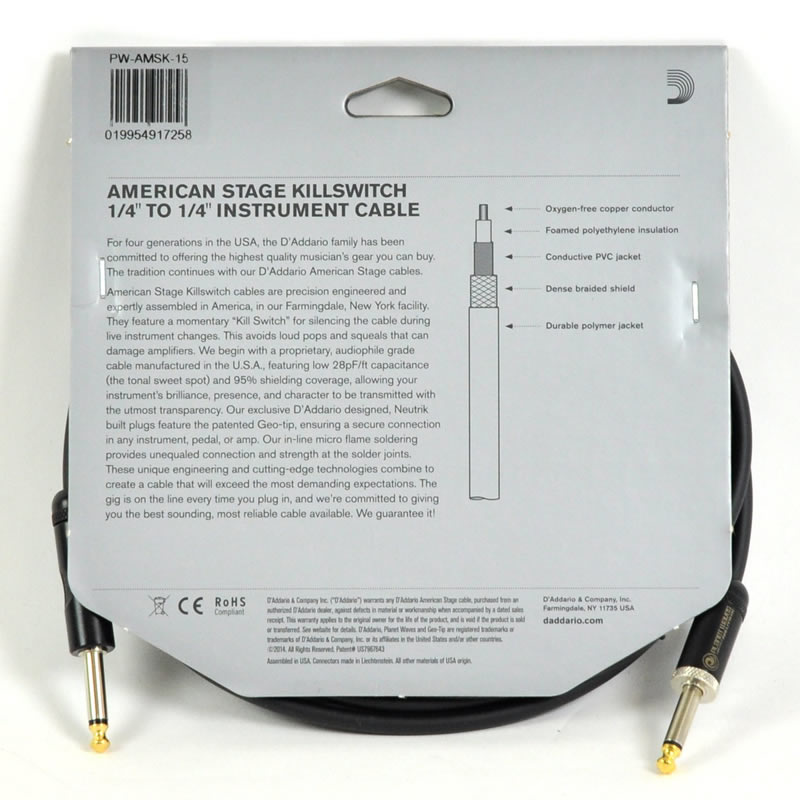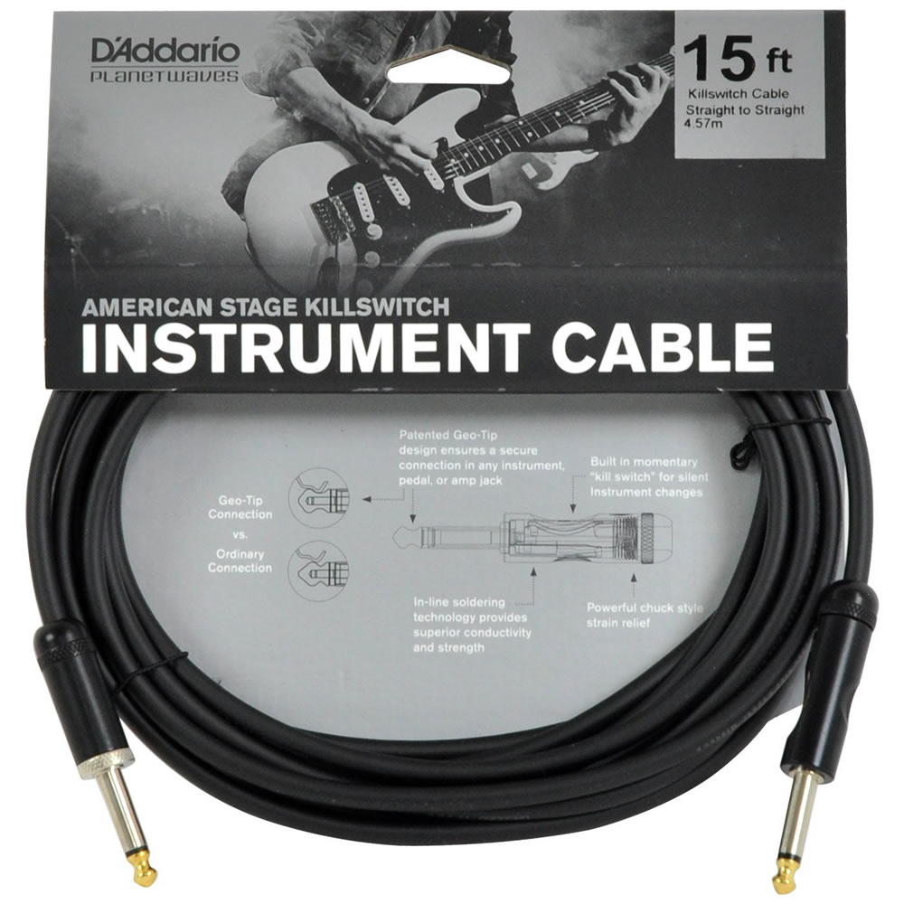 D'Addario PlanetWaves PW-AMSK-20 Amerikan Stage Serisi 6m Siyah Düz Kill Switch Uçlu Enstrüman Kablosu